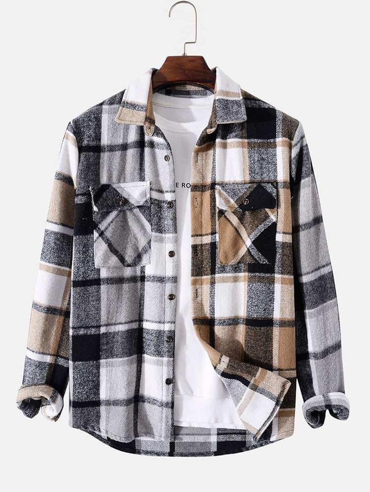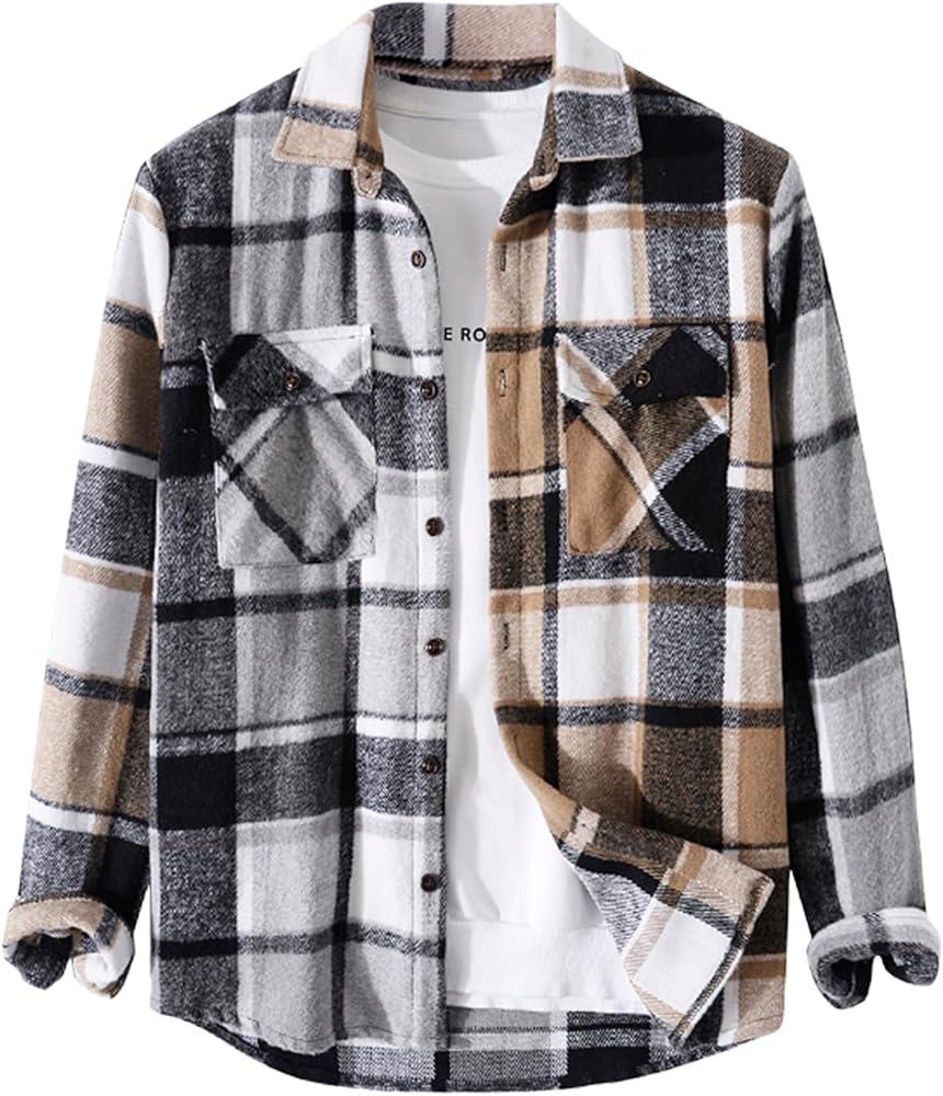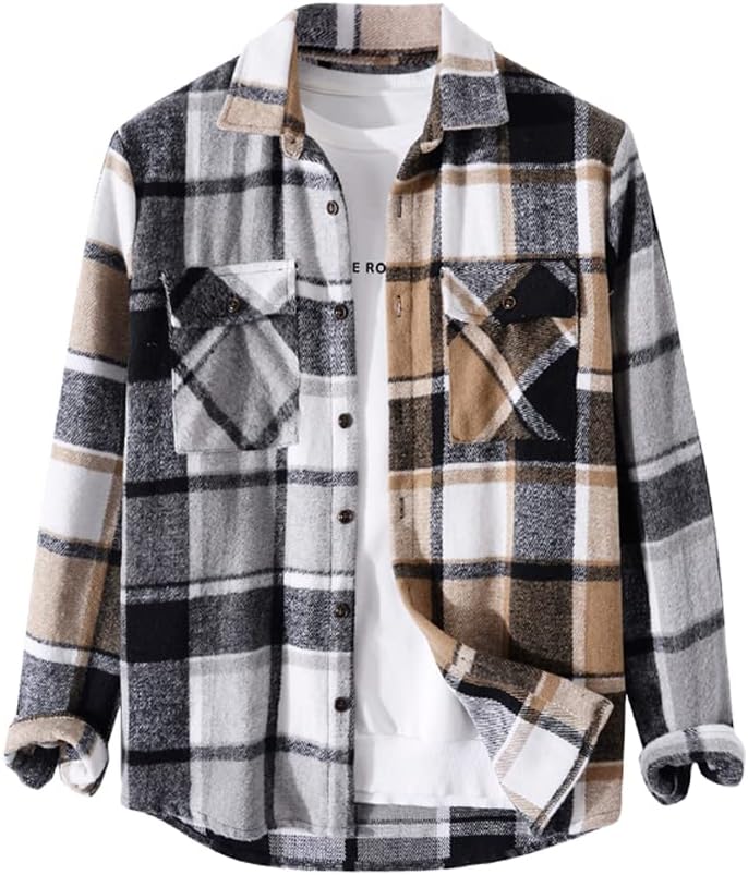 ZAFUL Mens Plaid Shirt,Long Sleeves,Classic Flannel Shirt Button Down Shirt Jacket Tops