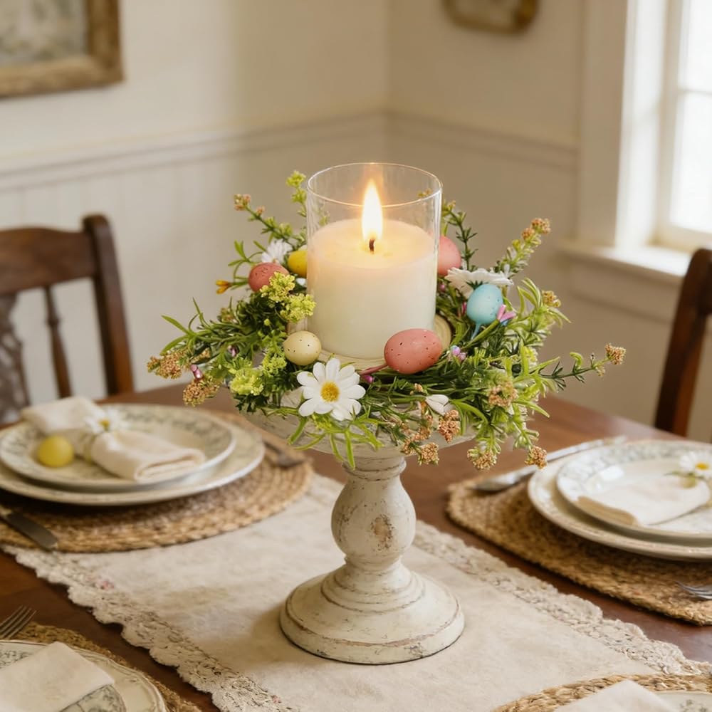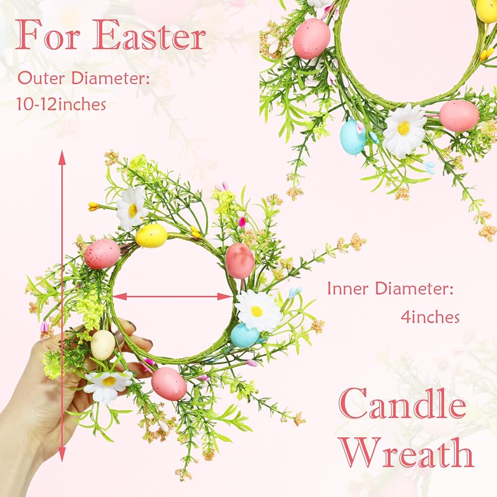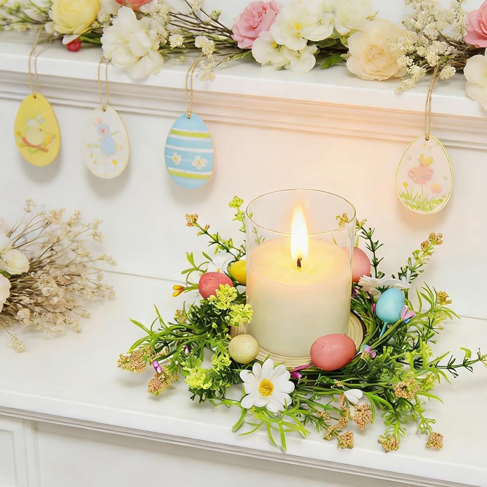 🥚 Size Details: Each Easter egg candle ring measures approx. 4" in inside diameter and 7.87" in total diameter. This perfectly sized easter candle wreath is large enough to fit most pillar candles, making it an ideal addition to your easter table centerpiece daisy egg setup and brightening up your dinner table, candle holder, or any decorative area.