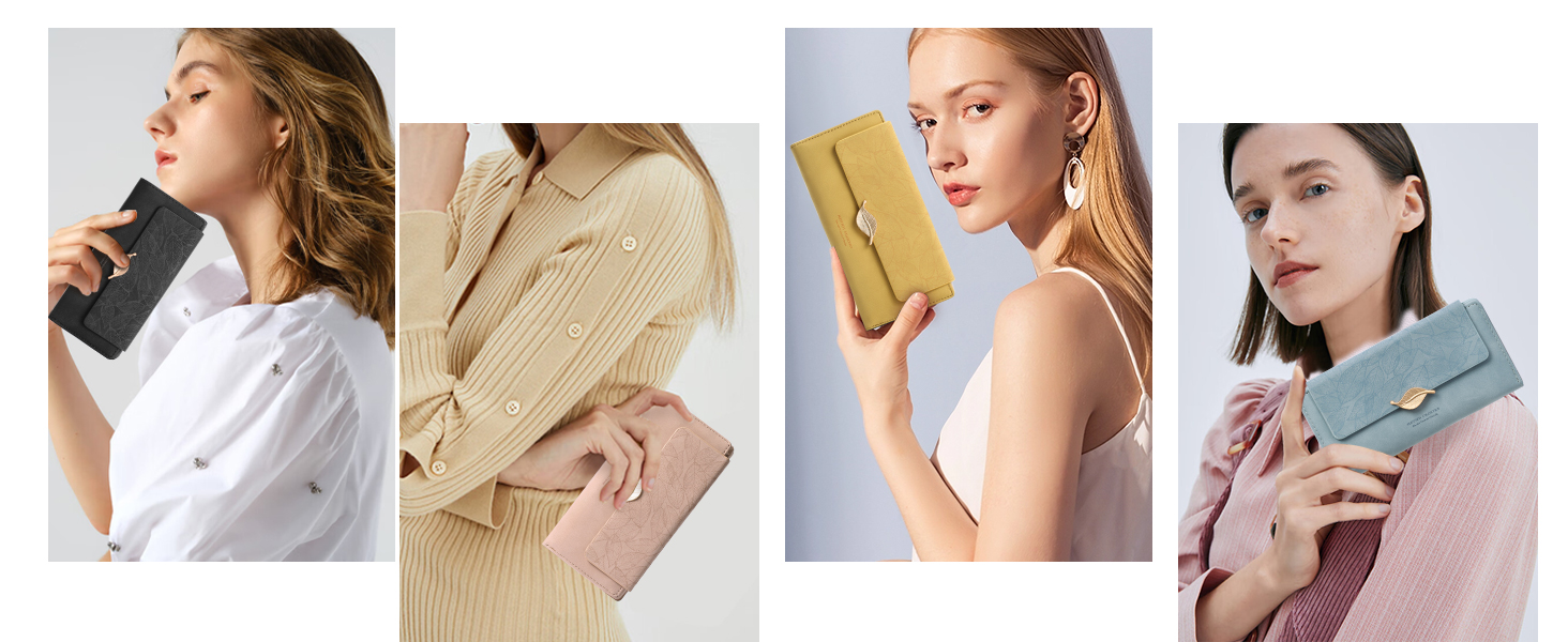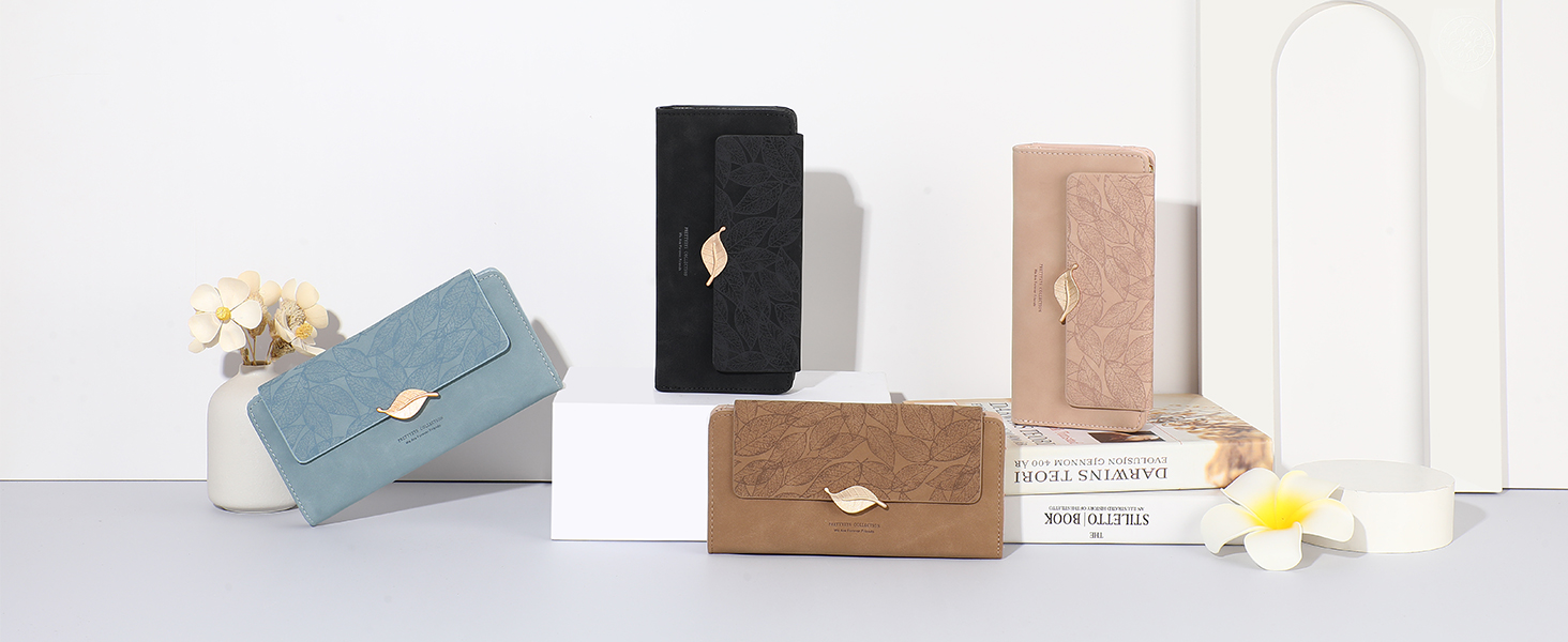 Sturdy & Long Lasting:This womens wallet are made of premium PU leather, smooth, soft and anti-fray, can protect your cards from dust and scratches. Unique hand-sewn stitching makes it more long lasting and will be more beautiful and unique after time and use.And leaf shaped prints and button designs are more fashionable