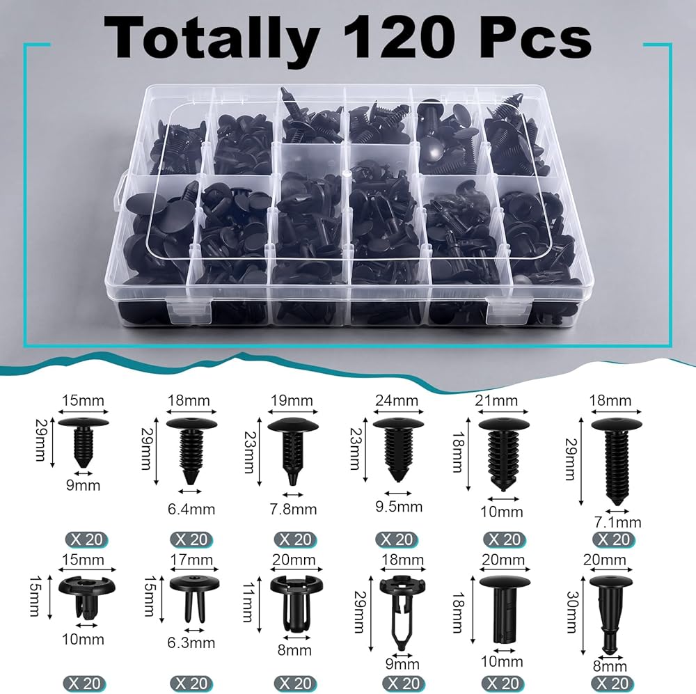 Bumper Clips: 12 most common sizes that cover 6.3mm to 10mm hole sizes