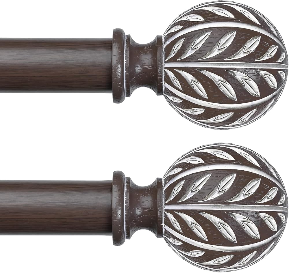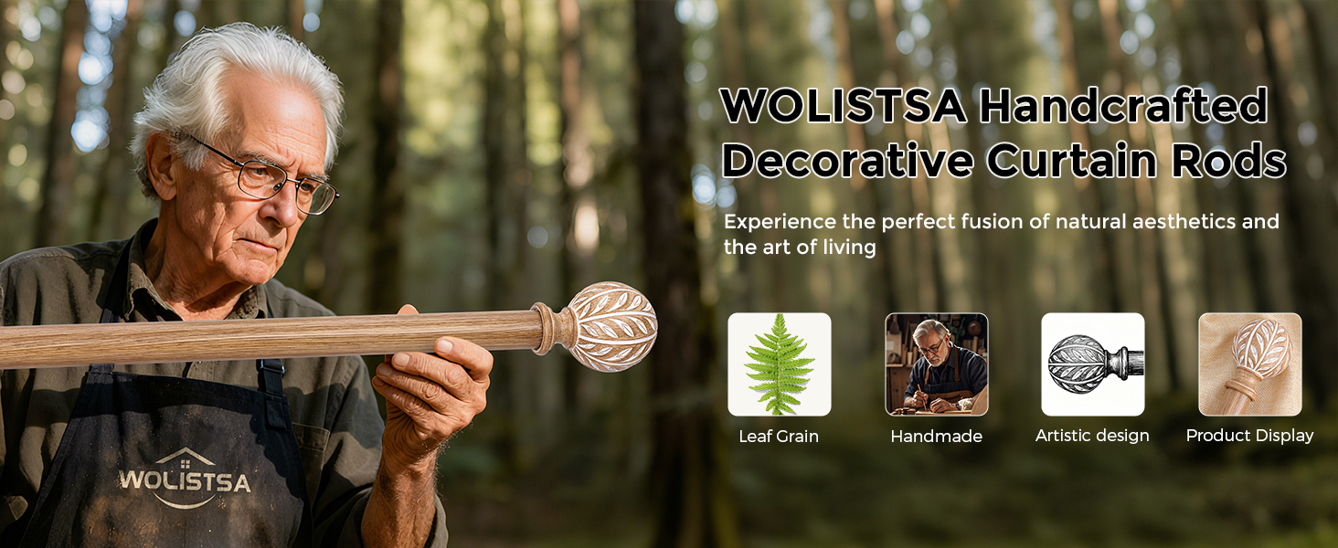 [Boho Wood Grain Leaf Pattern Curtain Rods] The Leaf pattern are designed by a professional design team, and then crafted by an experienced handcrafting team. Each top decoration of the decorative curtain rods for the windows presents a hand-painted imitation wood-grain effect. Boho curtain rod brings a sense of tranquility and simplicity from the forest into your home