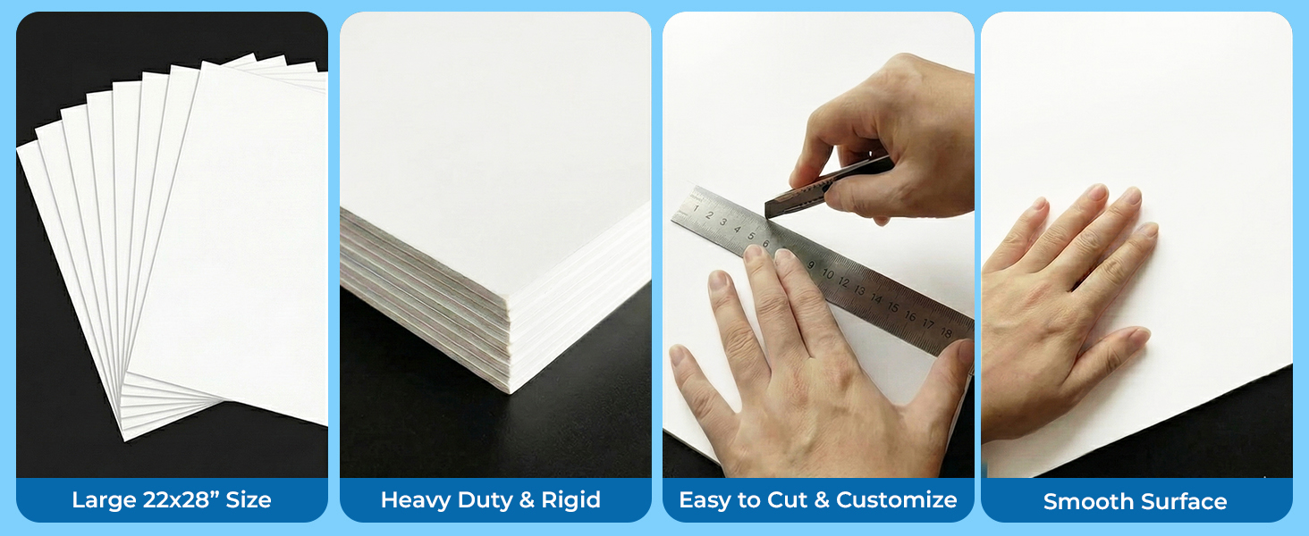 Strong & Sturdy : Each large sheet maintains excellent rigidity, resisting bends, dents, or warping even during heavy use. Perfect for long-lasting displays, large project boards, scrapbooking layouts, and professional or academic presentation panels.