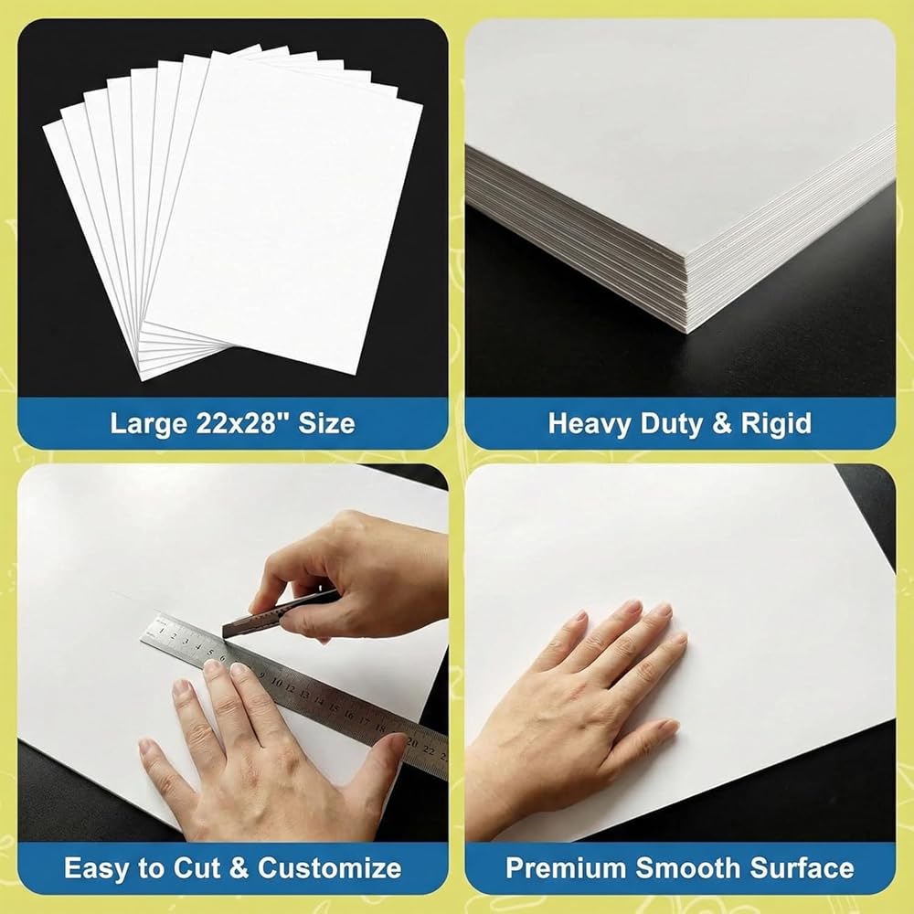 Bulk 25 Pack : Includes 25 oversized sheets of 22"×28" poster board, giving teachers, offices, studios, and event planners a generous supply for science fairs, art projects, event signage, promotional boards, and boards for vision boards.