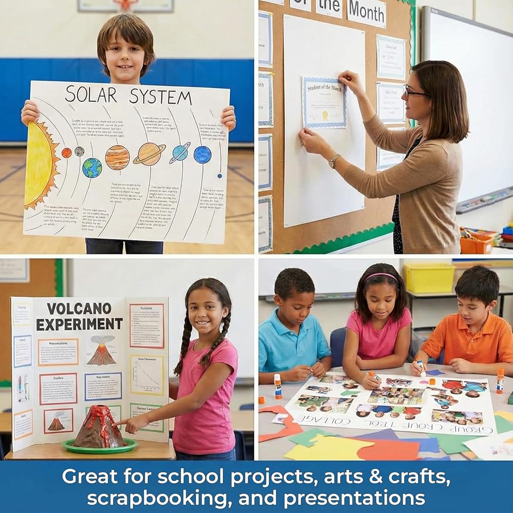 Multi-Use Design : This spacious large poster board size is ideal for classroom charts, business presentations, DIY decor, craft shows, photo mounting, collages, and personalized vision boards. Easy to cut, trim, or customize to fit any creative requirement.