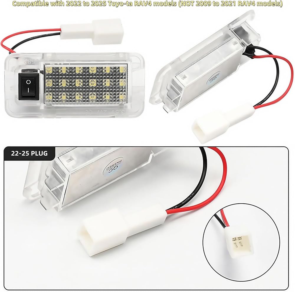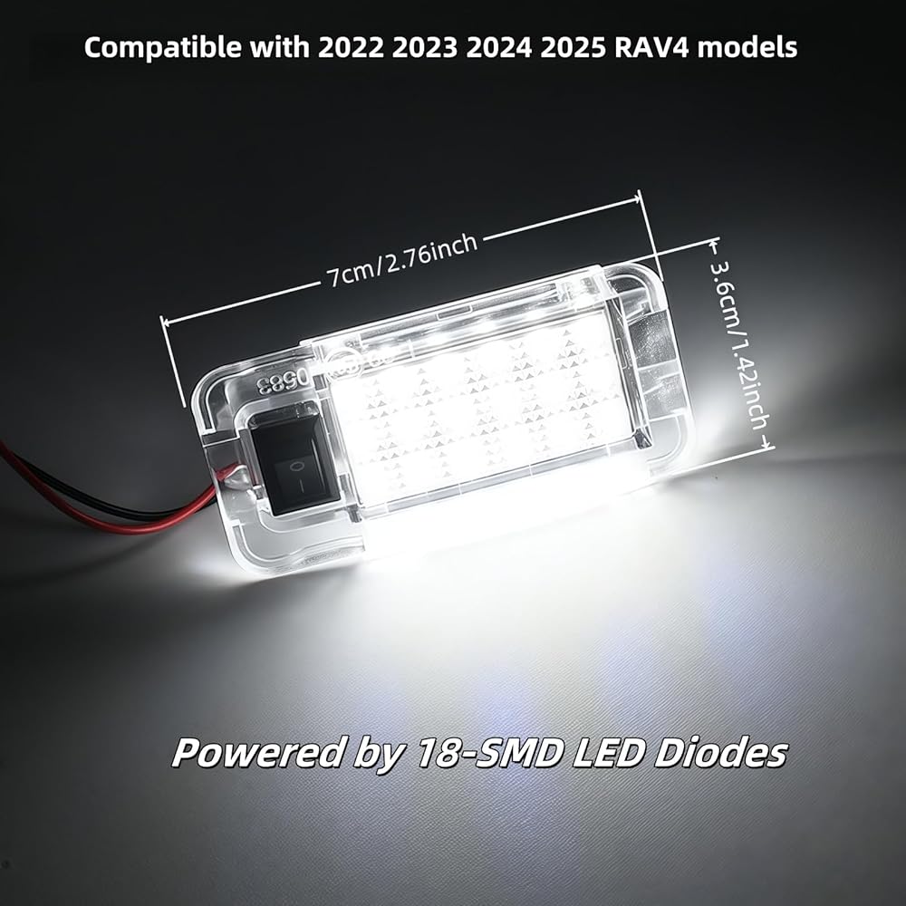 COMPATIBILITY: One piece direct-fit full LED trunk cargo area light assembly with on/off switch compatible with Toyota RAV4 2022-2025,2023-2025 RAV4 Prime Sequoia bZ4X GR Corolla Crown, 2023-2025 Prius, 2023-2024 Prius Prime models;Replacement for Lexus ES350 ES300h 2019-2021, 2020-2022 RX350 RX450h,2018-2023 LS500 LS500h,2018-2022 RX350L RX450hL,2018-2021 NX300 NX300h,2021 ES250,2019-2022 UX200,2019-2024 UX250h,2025 UX300h.Replace OEM Part Number: 81360-78020, 81330-11010,ensuring perfect fitment and seamless integration with your vehicle.