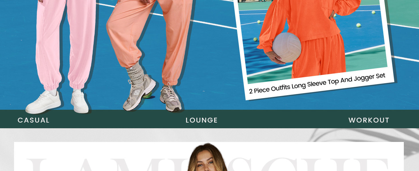 LAMISSCHE Womens Lounge Sets 2 Piece Outfits Long Sleeve Top And Jogger Set Matching Workout Set Comfy Pajama Sets