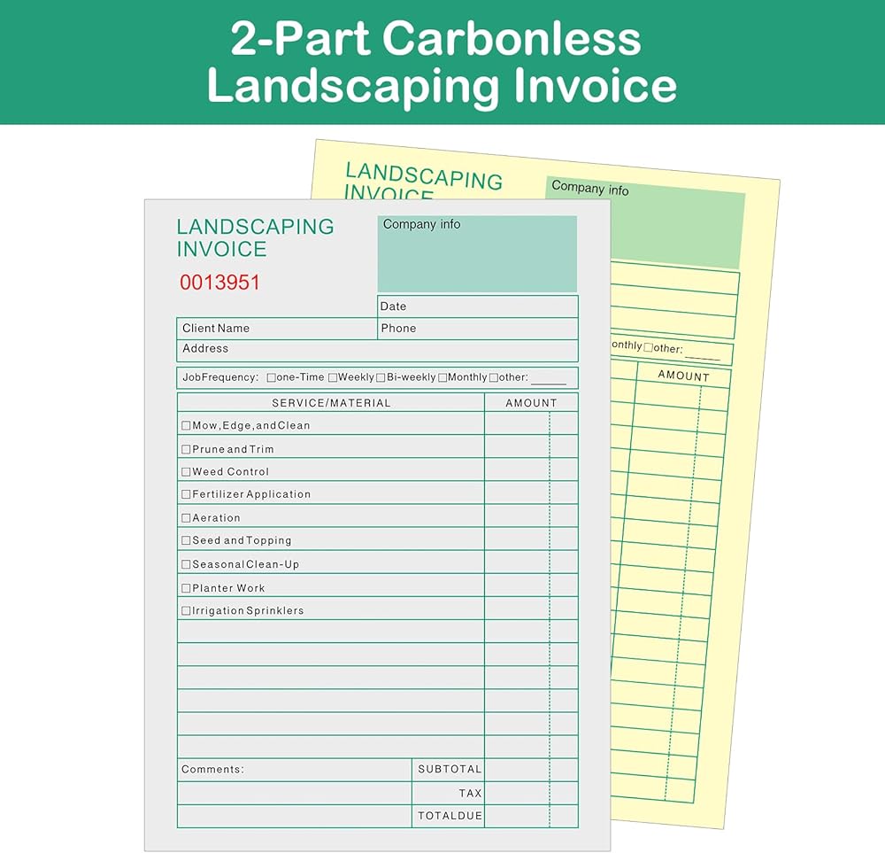 Suitable:this Garden Invoice for on-location jobs,are designed for lawn mowing, edging, pruning, trimming, planter work, spraying, and irrigation maintenance