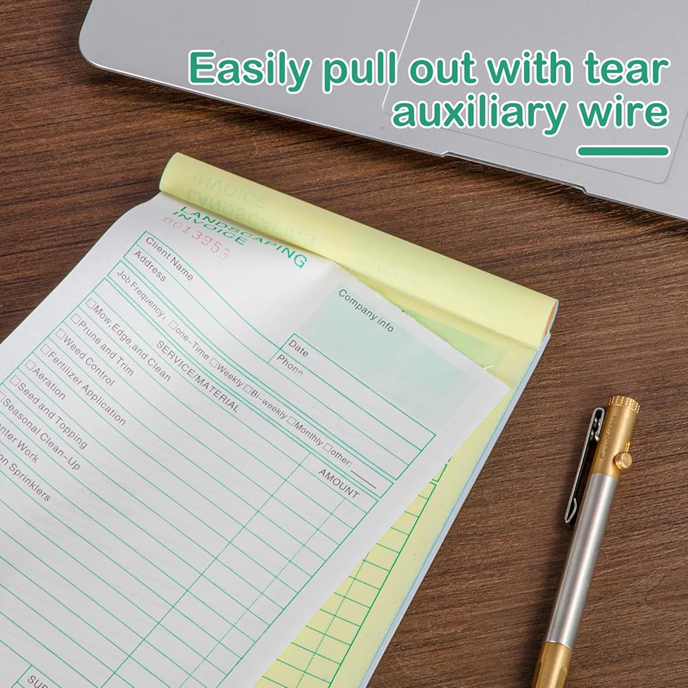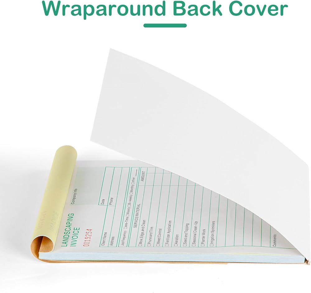 Paperboard:This Landscaping Invoice Book have wraparound cover attached to back to place between sets prevent ink penetration.