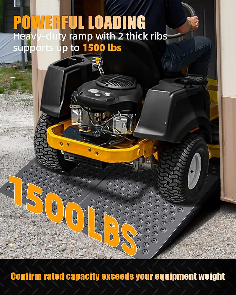 Perfect Ramps for Sheds, Barns & Garages: Easily load and unload lawn mowers, ATV,snow blowers,trailers,tractors,garden carts and motorcycles. Don't let a steep entrance hinder your shed experience.