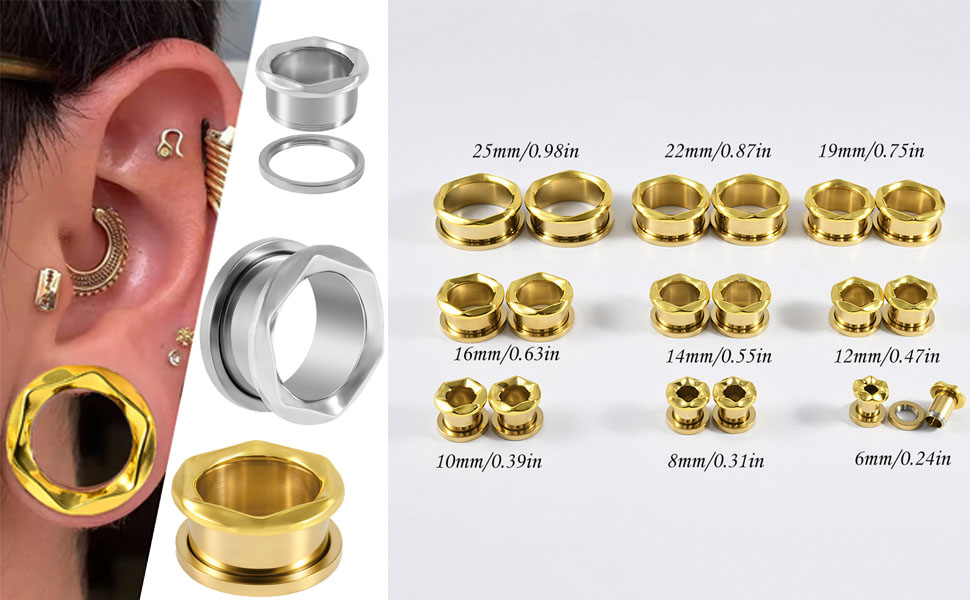 - Gauge:2g(6mm),0g(8mm),00g(10mm),1/2"(12mm),9/16"(14mm),5/8"(16mm),3/4"(19mm), 7/8"(22mm), 1"(25mm)