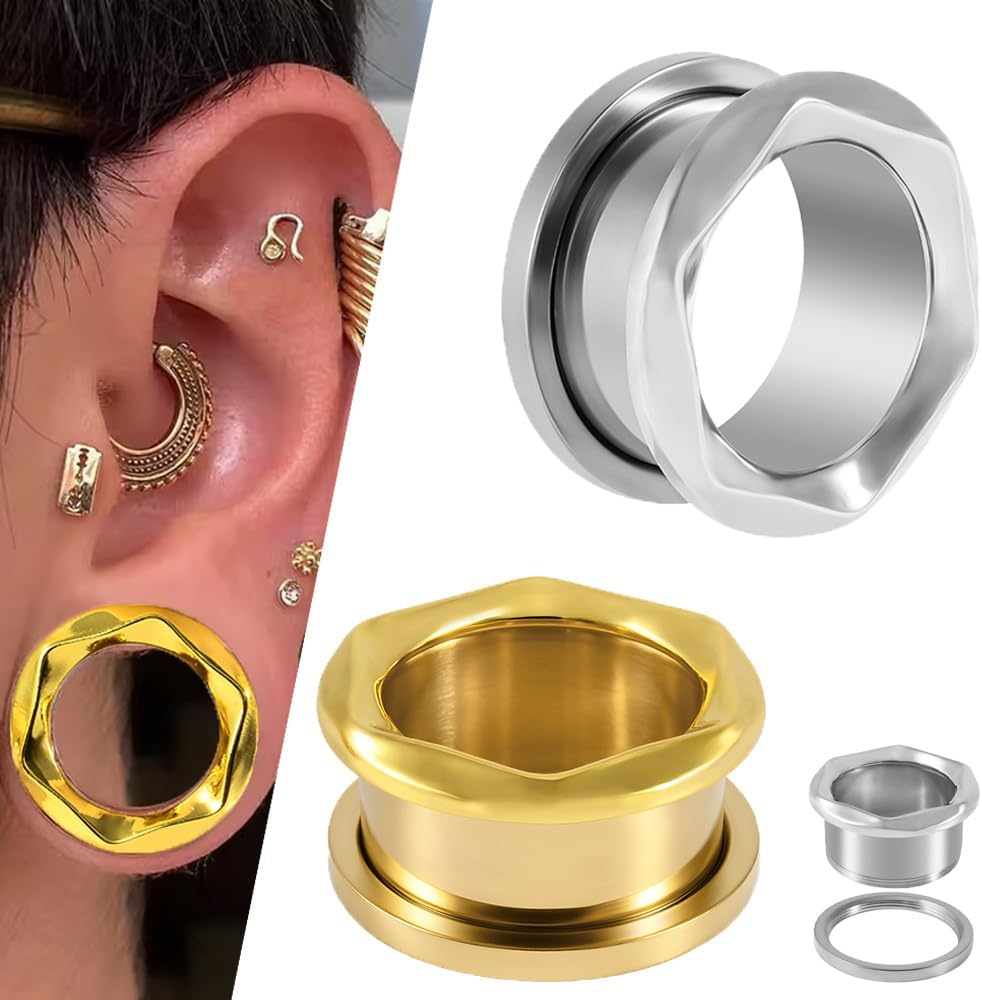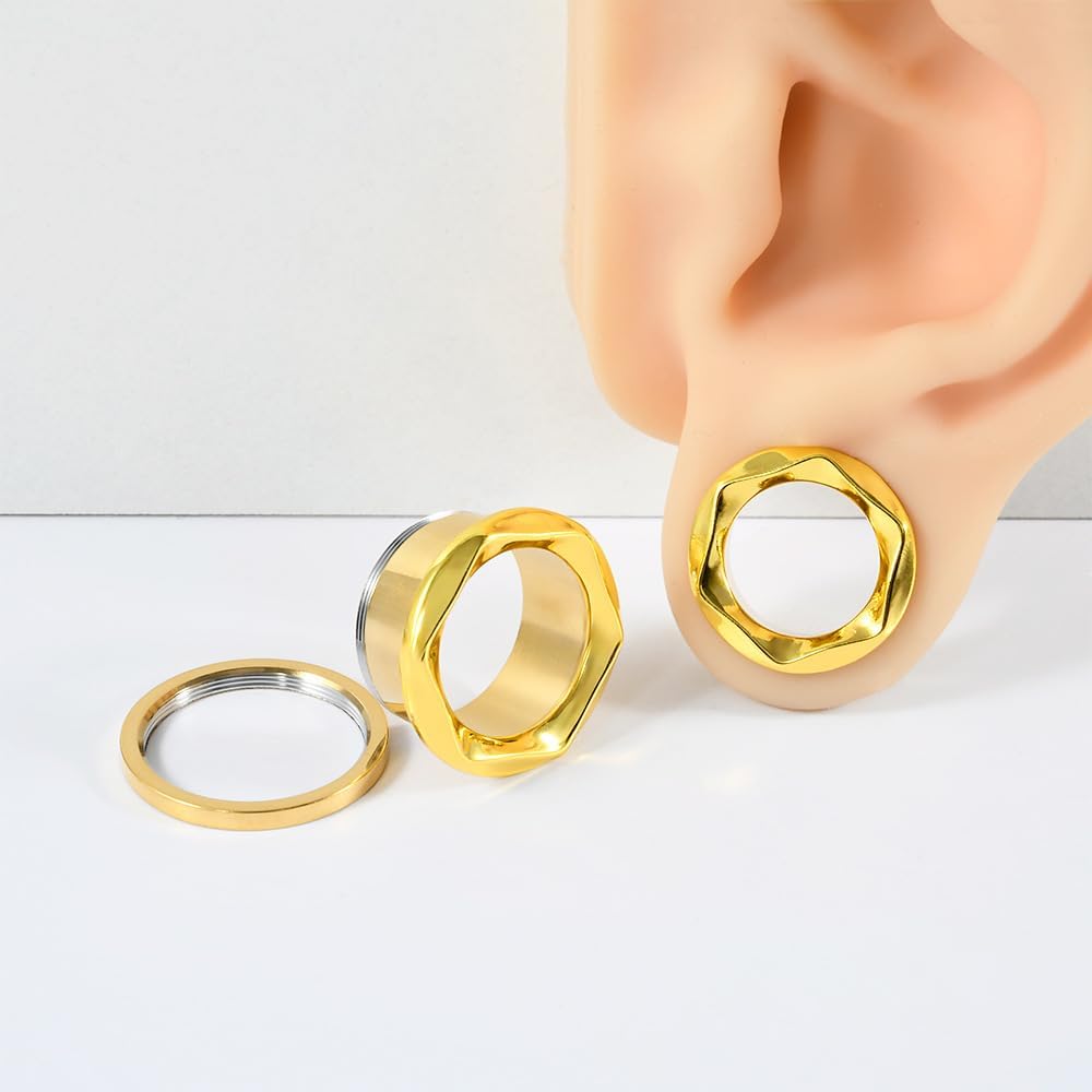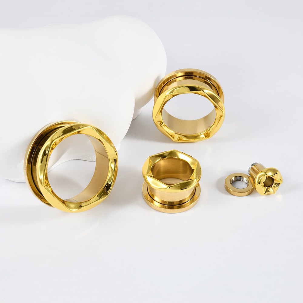 - Fashion and Classic twisted edge design, Eye Catching Twisted Texture Screw Fit Surgical Steel Ear Plugs for Ear Lobe Piercing body Jewelry