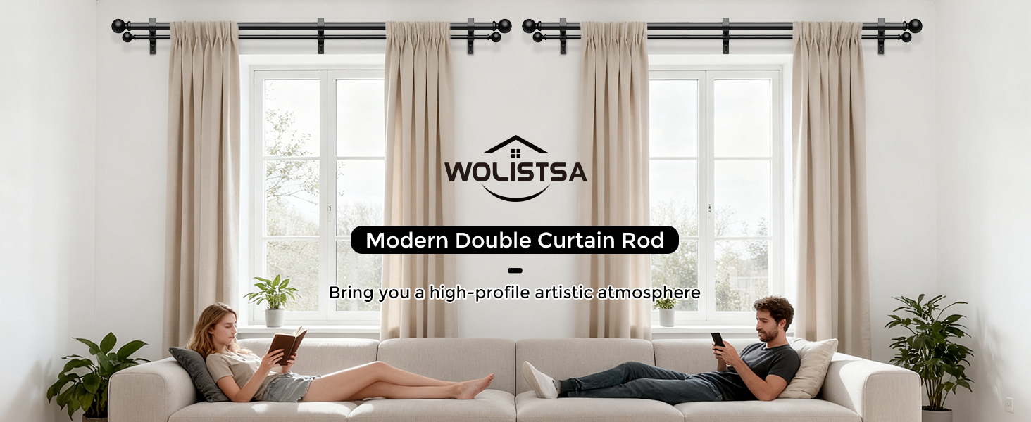 [MODERN BLACK CURTAIN ROD] This double curtain rod for windows is equipped with classic black round finials at both ends. Its simple yet elegant design can seamlessly blend with various home decoration styles. Whether used in bedrooms, living rooms, farmhouses, kitchens, sliding glass doors, or dining rooms, patio, etc., it can be an ideal choice