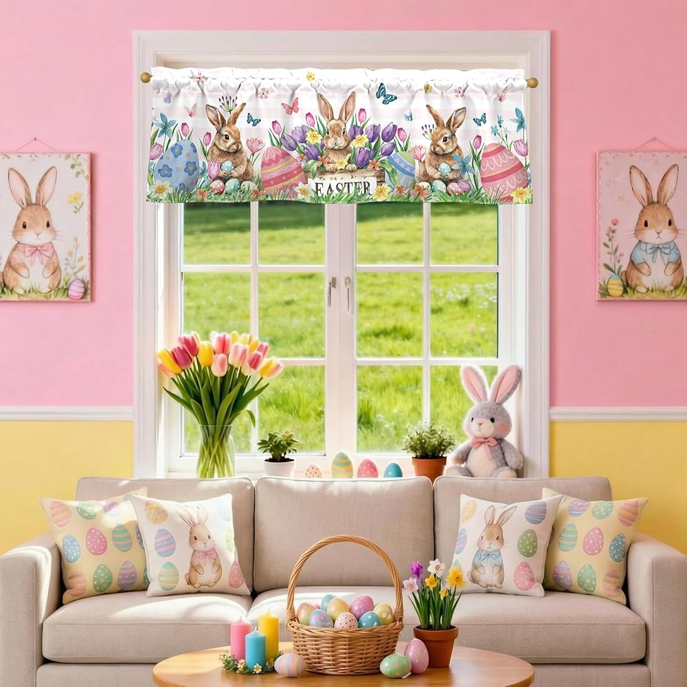 【Festive Gift】Wrap your home in Easter charm with our valance! It's more than just a decorative piece — it's the key to quickly unlocking a bright and cheerful Easter atmosphere in any space. Perfect as a gift for relatives and friends, it fills their homes with joyful Easter spirit.