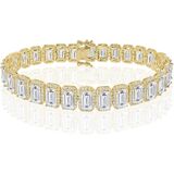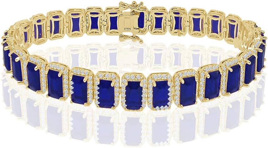 Finish : 14K Gold 3X Electro Micron Finish (Triple Layer Plating Main Stone : Real Genuine Authentic VVS1/D Lab Grown Simulated Diamonds Total Diamond Carat Weight (TCW) : 6.65 Cwt. Diamond Clarity : VVS1 Diamond Color : White ( D ) Diamond Cut : Excellent Diamond Treatment : Not Enhanced Diamond Setting : Prong/Pave Diamond Shape : Baguette/Round Brilliant Cut Bracelet Length : 7.5 / 8 / 8.5 Inches Bracelet Width : 8 mm Weight : 21 - 25 Grams (Approximate) Weights are approximate, there may be up to 10% variation in actual item. Gender : Men's/Women's (Unisex) Condition : New With Tag Metal : Solid Bronze