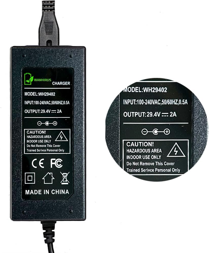 شاحن 29.4 فولت 2 أمبير 5 مقابس للسكوتر 24 فولت 25.2 فولت 25.6 فولت 25.9 فولت بطارية ليثيوم، حزمة تيار مستمر 5.5 * 2.1 مع موصل 8 مم 3 شقوق / 12 مم 3 شقوق / 8 مم RCA / موصل XLR ذكر 3 دبابيس
