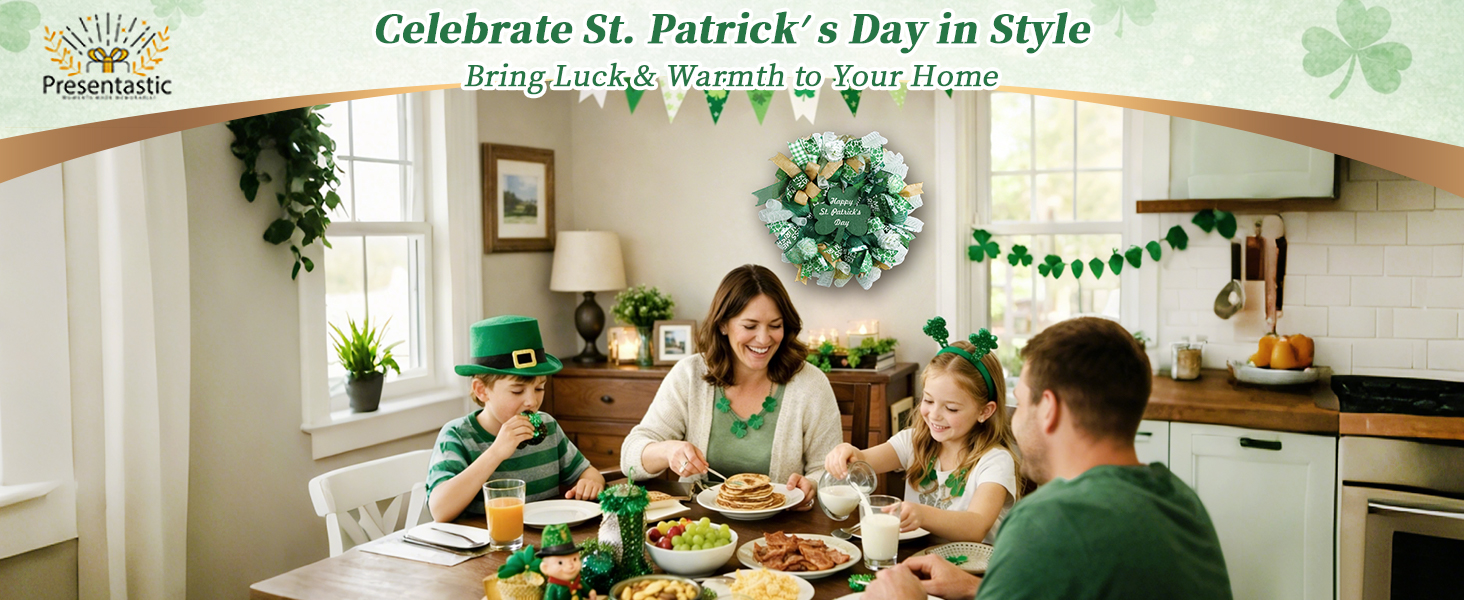 Embrace March Luck St Patrick's Day Wreath: Bring the luck of the Irish to your front door. Designed with vivid shamrocks and accented by rare four-leaf clovers symbolizing double luck,saint patricks day wreath is sure to make your home the envy of the neighborhood. Bursting with authentic Irish charm, it offers the perfect welcome for your holiday visitors