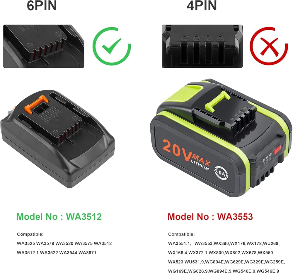 Compatible with Worx 20V lithium tools: