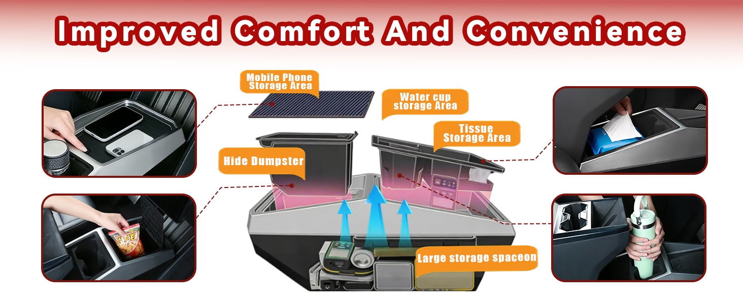 [𝙏𝙤𝙤𝙡-𝙁𝙧𝙚𝙚 𝙄𝙣𝙨𝙩𝙖𝙡𝙡] Tool-Free, Snug-Fit Installation set up in 2 minutes flat: simply slide the automotive center consoles into the gap between your forCybertruck's front seat and center console. It locks into place securely (no tools required) and stays tightly fitted even during sharp turns.