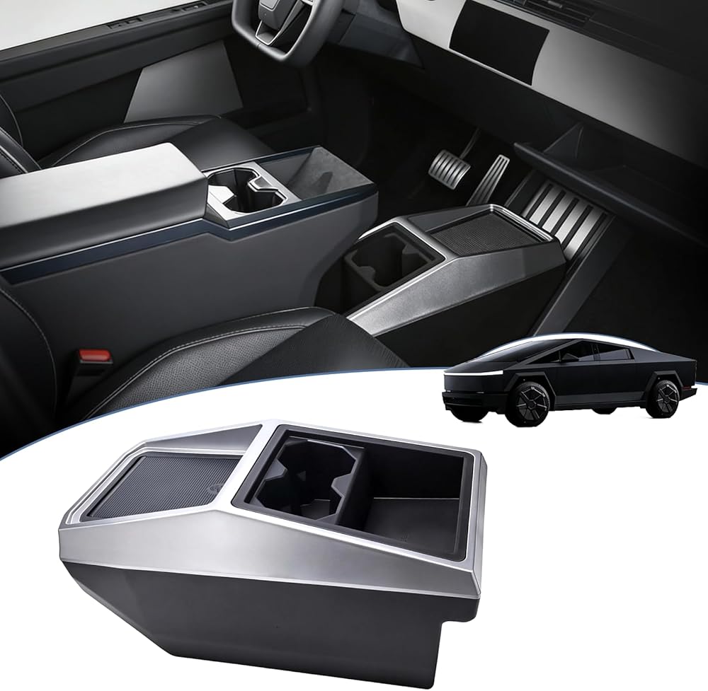 Center Console Organizer Compatible with Tesla Cybertruck 2024 2025, Center Console Storage with Cup Holder, Phone, Charging Cable forCybertruck Accessories, Multifunctional Storage Box