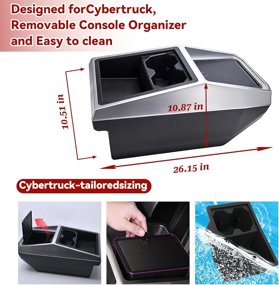 [𝘾𝙪𝙨𝙩𝙤𝙢 𝙁𝙞𝙩] This automotive consoles & organizers designed exclusively to match forTesla Cybertruck 2024-2025 (front seats & center console area), ensuring a seamless, custom fit without modifications.