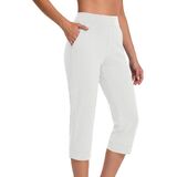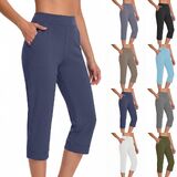 Womens Capri Pants High Waisted Straight Leg Yoga Capris Leggings with Pockets Cropped Pants Workout Summer Pants
