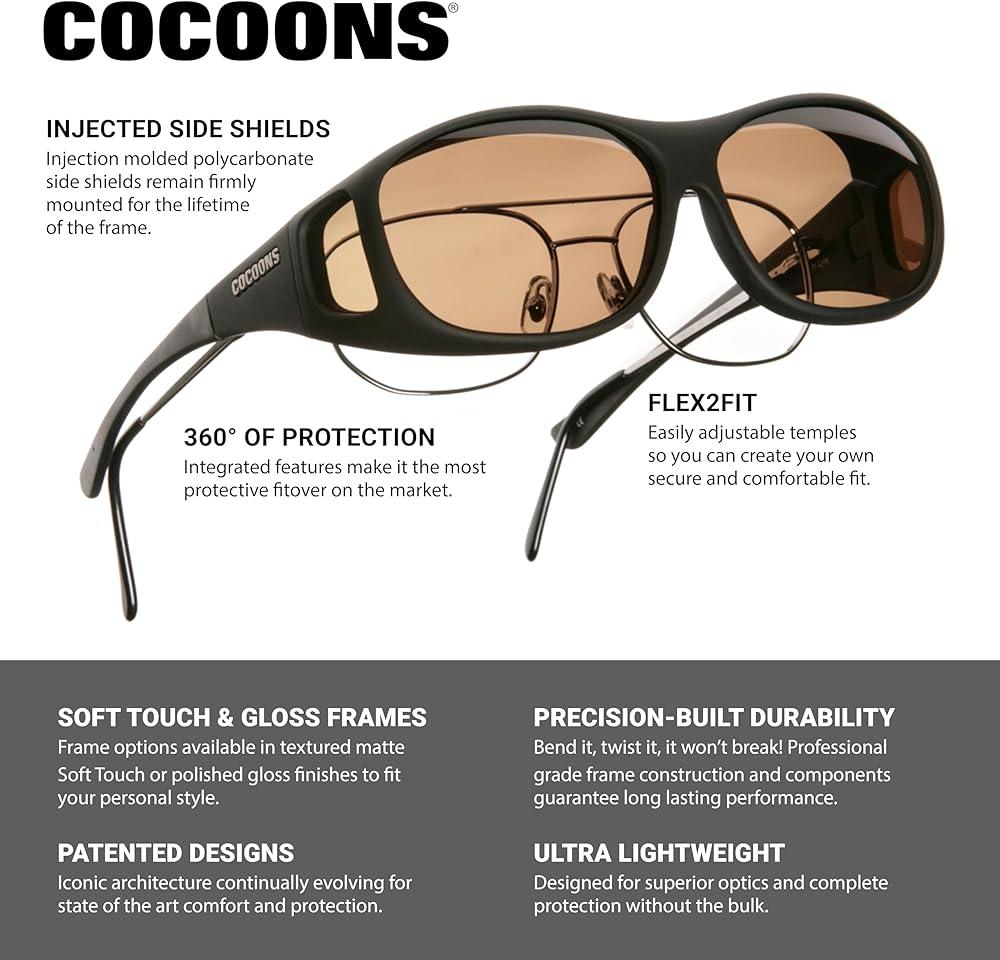 Eight Sizes – Cocoons are available in eight sizes to completely fit over most eyewear styles. Is Slim Line (M) the correct size? The Slim Line (M) fits over eyewear not exceeding 135 mm wide x 42 mm high. Visit the Cocoons store for additional options and sizes.