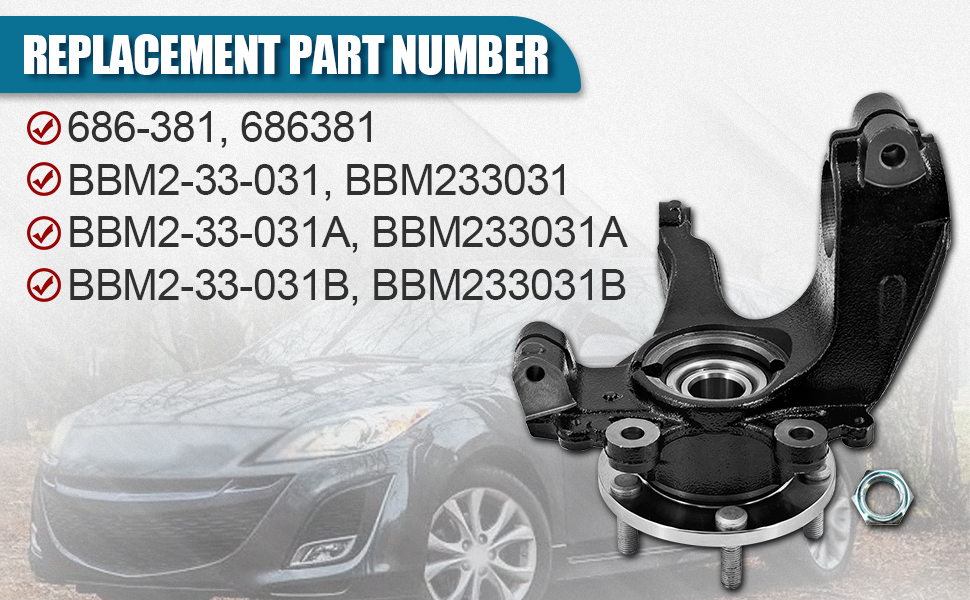 BBM2-33-031C 686-381 Front Driver Side Steering Knuckle compatible with Mazda 3 2010-2013 LH Front Left Side Steering Knuckle Replace# BBM233031C BBM2-33-031 BBM233031