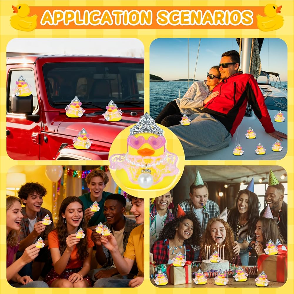 Easy DIY Assembly – Customize your jeep duck effortlessly! Attach the crown, glasses, necklace, and lace skirt using included mini-tape, then secure it to any surface with strong double-sided adhesive.