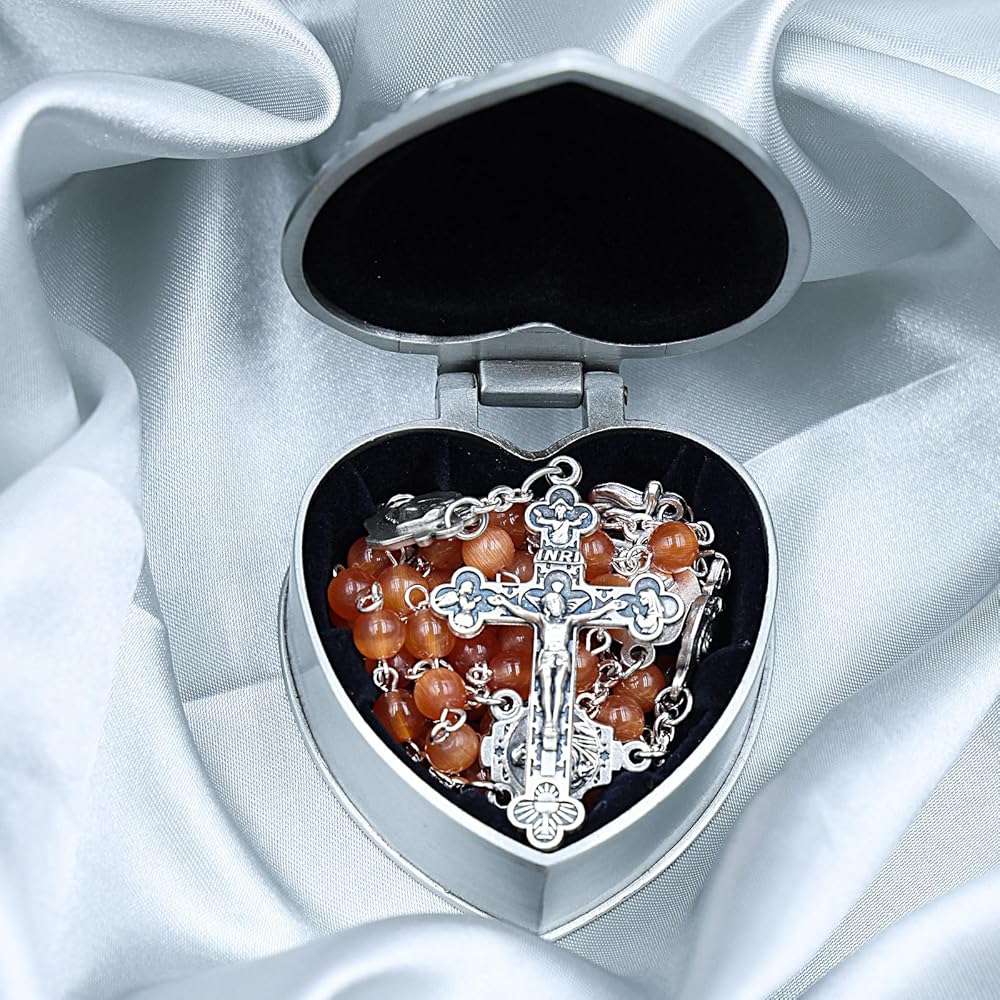 ROSARY BEADS CATHOLIC FOR WOMAN: Italy 6mm AAA+ reddish orange cat eyes gemstone , NOT Ceramic, With 1.77''Jesus Crucifix, is silver-plated zinc alloy
