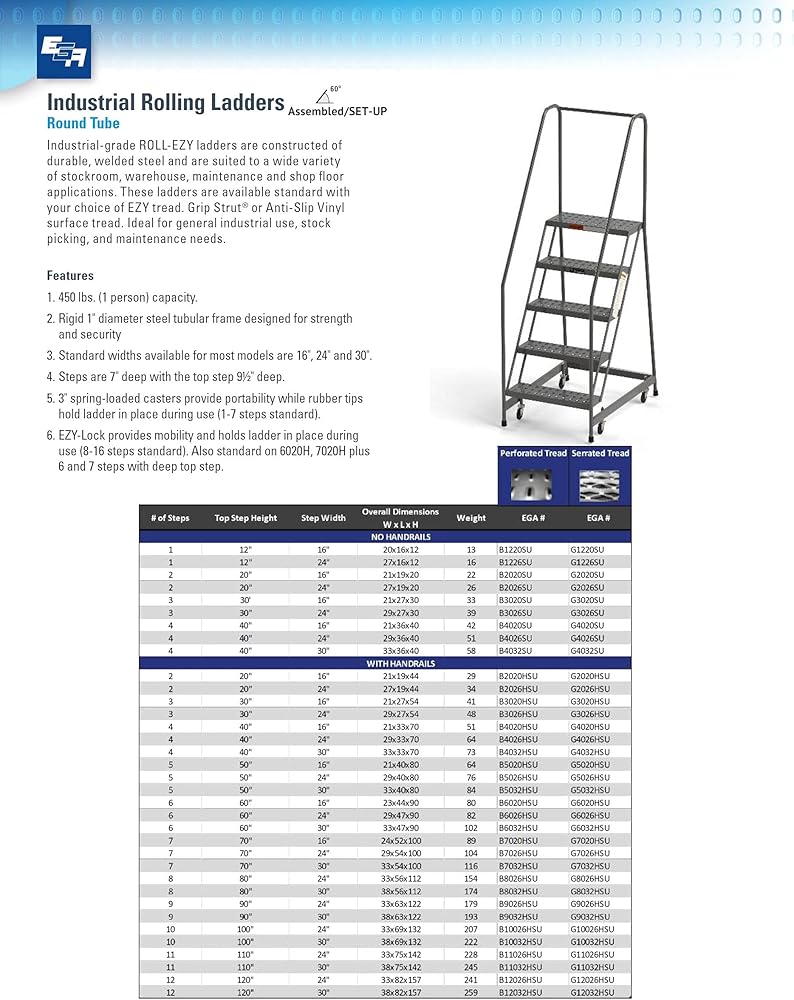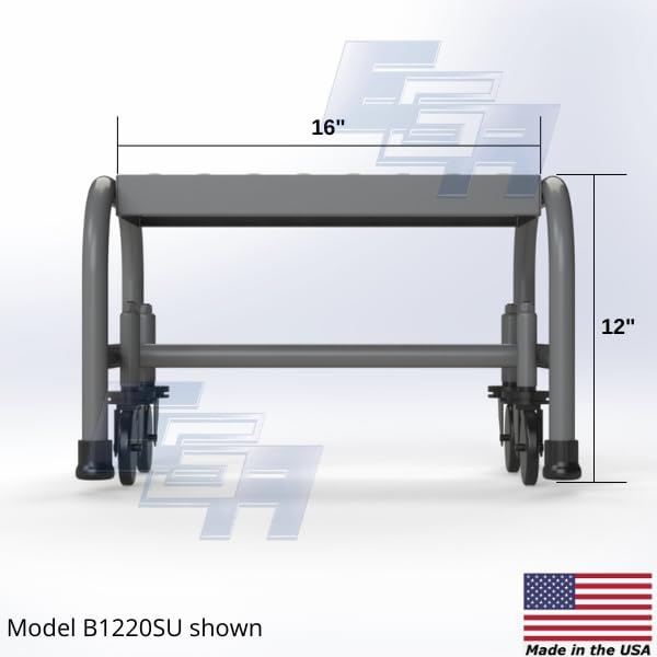 1 Step Rolling Step Stool Ladder, B1220SU, 12" H Top Step Height, OSHA Compliant, [Made in USA], (1 Step, 16" W Perforated Tread)
