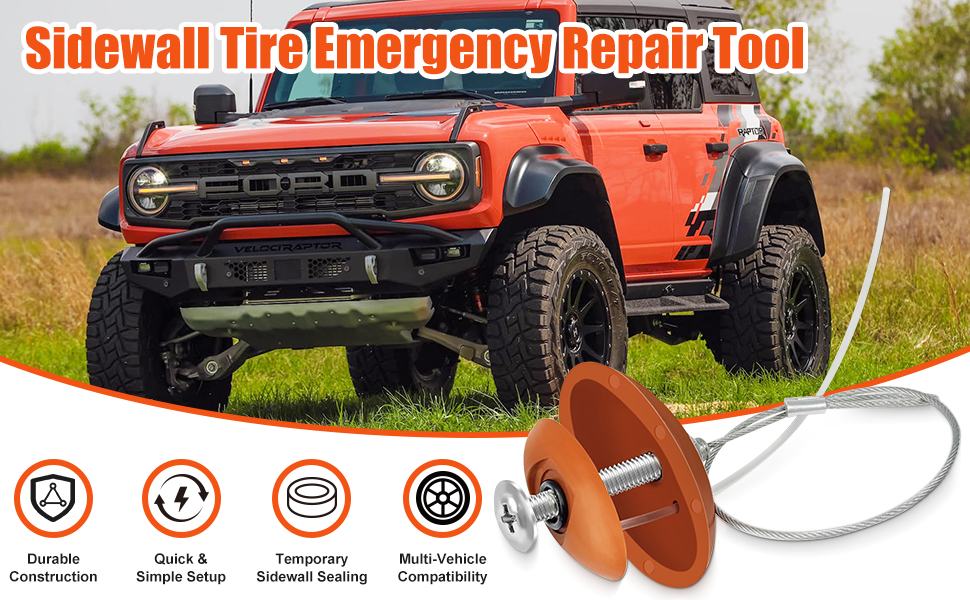 Emergency Sidewall Repair: Temporarily seal sidewall cuts and tears up to 1.5" so you can drive your vehicle to safety or a repair shop. For emergency use only.