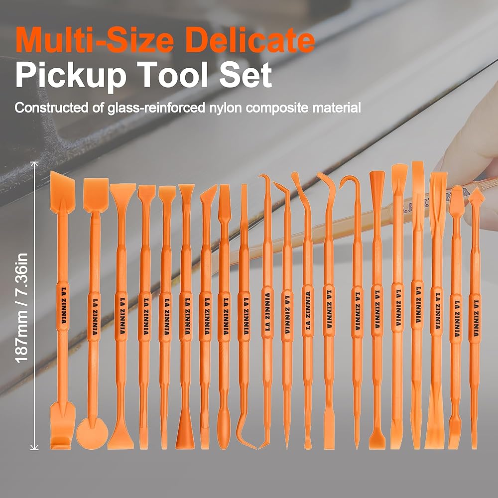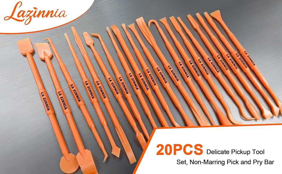 20PCS Delicate Pickup Tool Set, Non-Marring Scraper & Pry bar Kit, Multifunction Double-ended Mini Pick and HookTools, for various jobs detail clean, separating small parts, remove trim clips…