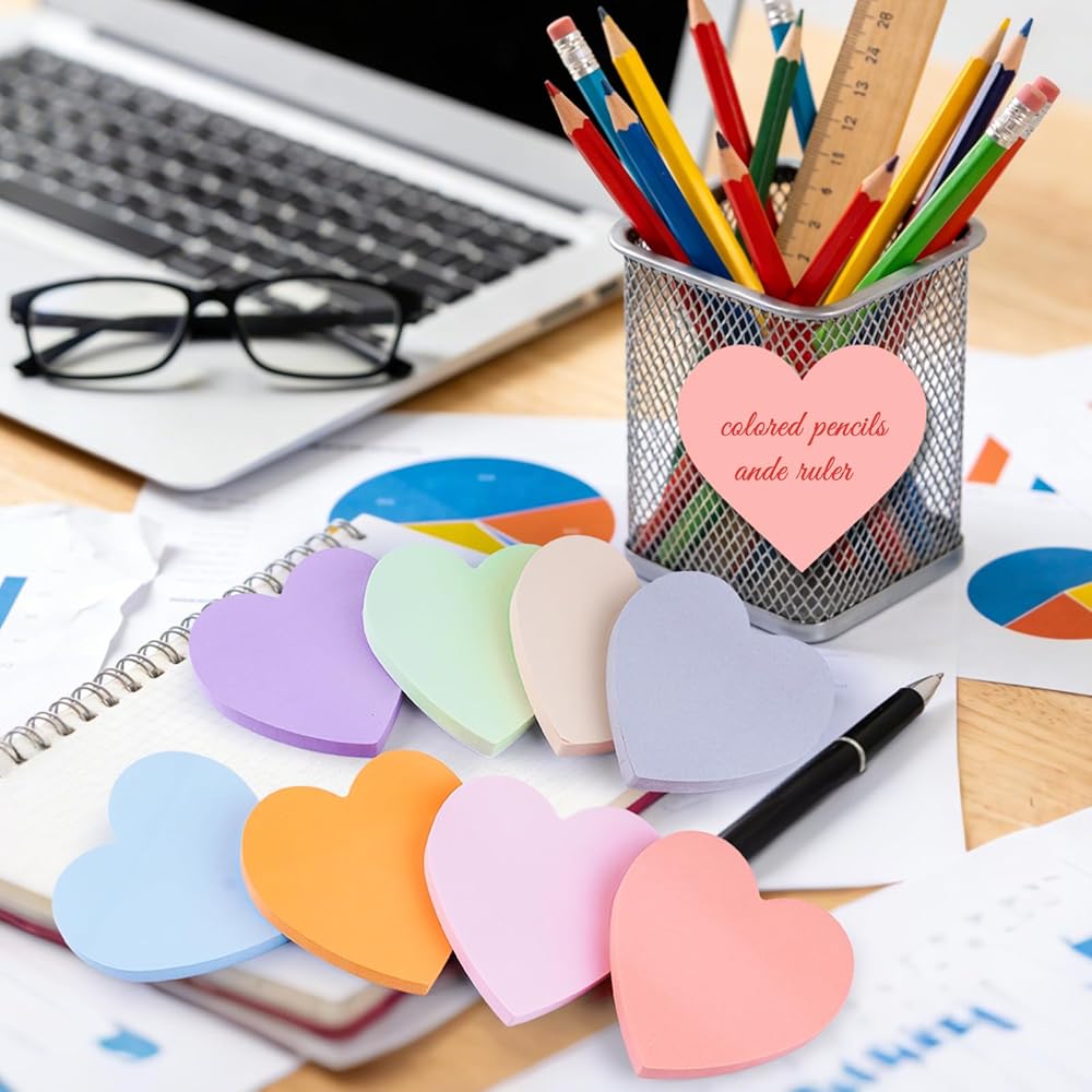 Super Value Pack: Cute Heart Sticky Notes measures 2.8 in x 2.8 in, 8 Pads/Pack, 80 Sheets/Pad and 640 sheets total, affordable set.