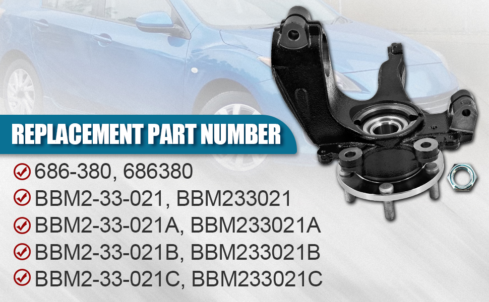 BBM2-33-021C 686-380 Front Passenger Side Steering Knuckle compatible with Mazda 3 2010-2013 RH Front Right Side Steering Knuckle Replace# BBM233021C BBM2-33-021 BBM233021