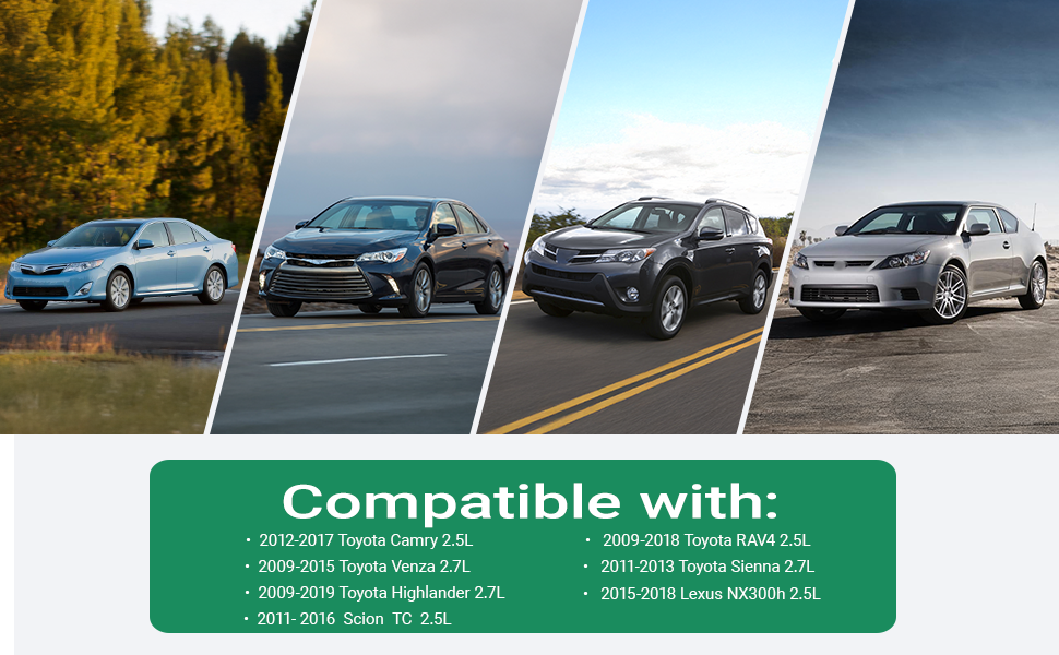 ◇Compatible With:2012-2017 Toyota Camry 2.5L/2009-2018 Toyota RAV4 2.5L/2009-2015 Toyota Venza 2.7L/2011-2013 Toyota Sienna 2.7L/2009-2019 Toyota Highlander 2.7L/2015-2018 Lexus NX300H 2.5L/2011-2016 Scion TC 2.5L---------Fits DOHC Engine Only
