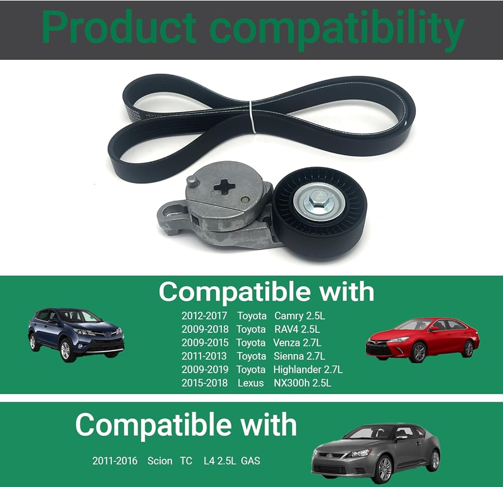 39106 Belt Tensioner With Pulley Fits 2012-2017 Toyota Camry,2009-2018 RAV4,2009-2015 Venza,2011-2013 Sienna,2009-2019 Highlander,2011-2016 Scion TC 2.5L 2.7L DOHC Engine Only