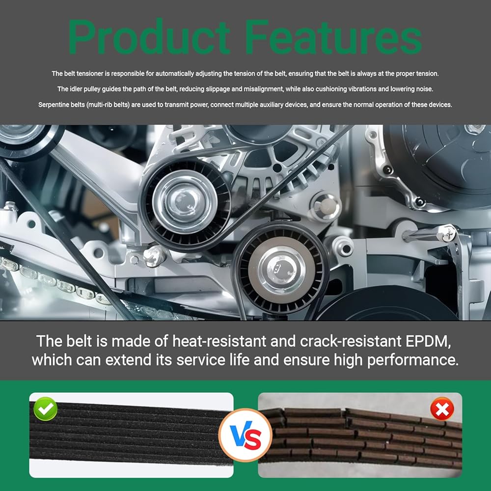 ◇Package Include: Belt Tensioner x1, Serpentine Belt x1,Idler Pulley x1