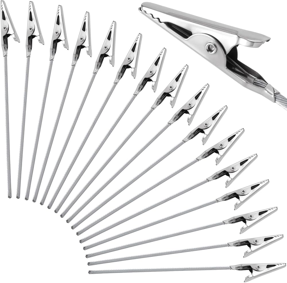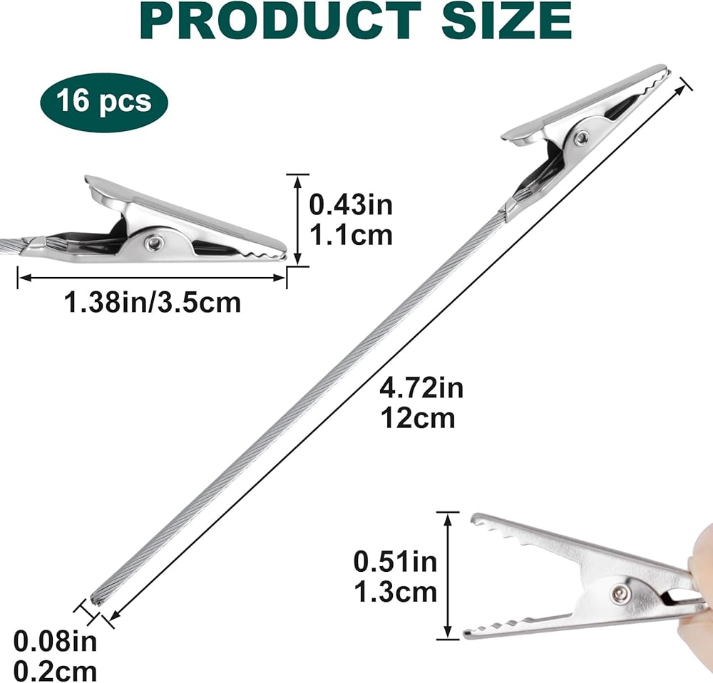 DC,CLISENCE 16 Pcs Alligator Metal Roach Clips for Joints, Roach Clips for Crafts, Telescopic Long Tailed Blunt Holder for Photo, Pictures (Metal, 4.72 Inch / 120MM)