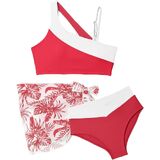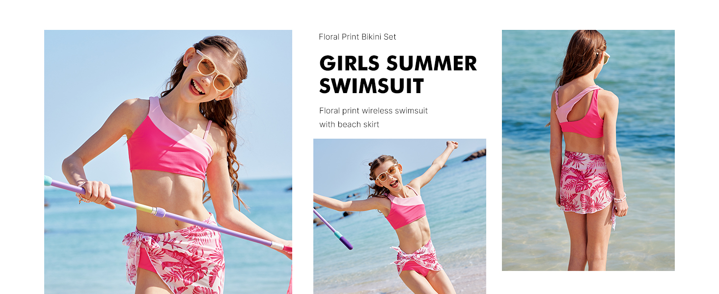 FEATURE: Girls Swimsuit is a 3-piece set featuring a high-waisted bottom design for extra coverage, a chic cut-out contrast triangle bikini top with adjustable straps, removable padding for customizable bust support and adds comfort and security for developing bodies, a matching Hawaiian floral cover up skirt for versatile styling, and a convenient pull-on closure for easy wear