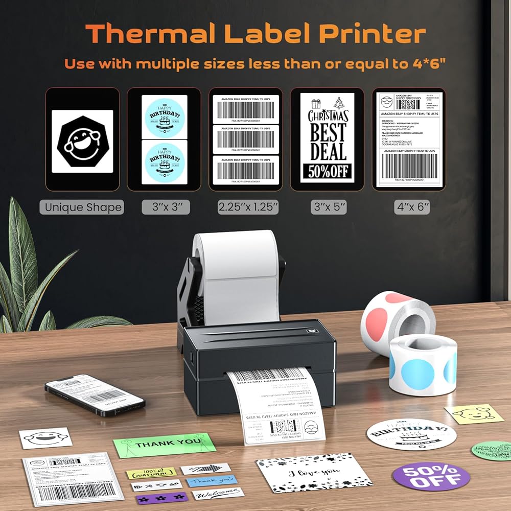 Aixiqee Bluetooth label printer:it supports almost all shipping and e-commerce platform label printing, including Amazon/Ebay/Shopify/Esty/USPS/UPS/TK/Temu, etc.