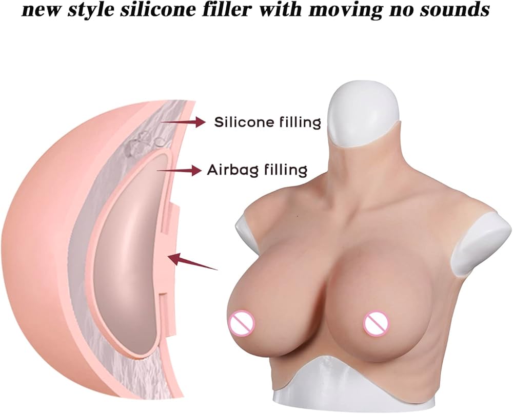 Oil-free 8th Generation Silicone Breastplate With Makeup Skin Float Point Inside Airbag Silicone Filler Touch Soft (Beige, XL-K Flocking)