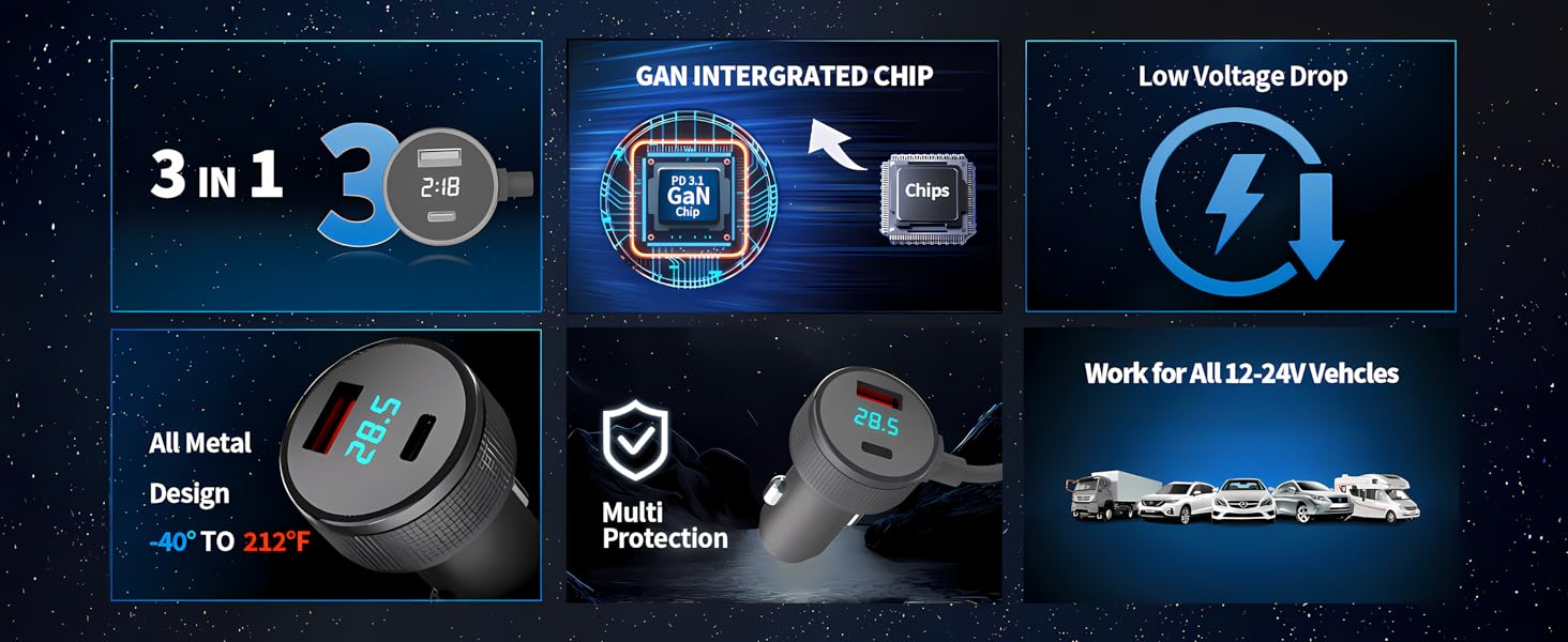 Built-in Protections: Our starlink mini car adapter is equipped with heat dissipation aluminum alloy shell and features an integrated circuit breaker to prevent device from overcurrent, as well as Ai chip-based protections against overvoltage, overheating, overcharging, and short circuits,withstanding extreme temperatures