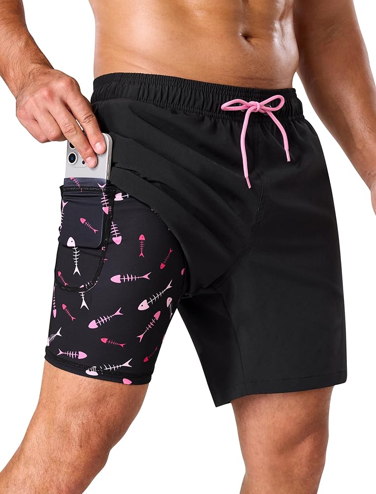 2-in-1 Mens Swim Trunks with Compression Liner: Mens bathing suit provides excellent support and breathability. The compression liner keeps sand away and protects your skin, reducing the risk of bruising during activities.