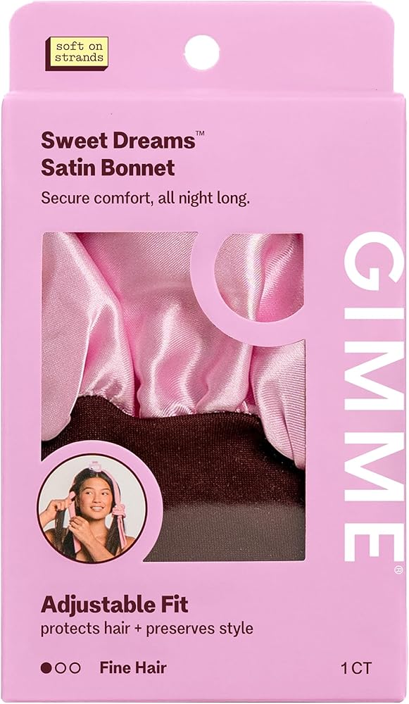 Split ends don't belong in sweet dreams. Designed to protect delicate, fine strands, Gimme BeautyÕs Sweet Dreams Satin Bonnet helps minimize friction, frizz, and breakage while you sleepÑpromoting smoother, healthier hair over time. Made from ultra-soft satin, this lightweight bonnet features a secure yet gentle stretch band that stays comfortably in place through every toss and turn, so you can zZz in luxury.