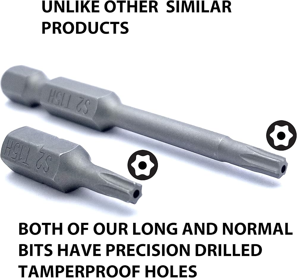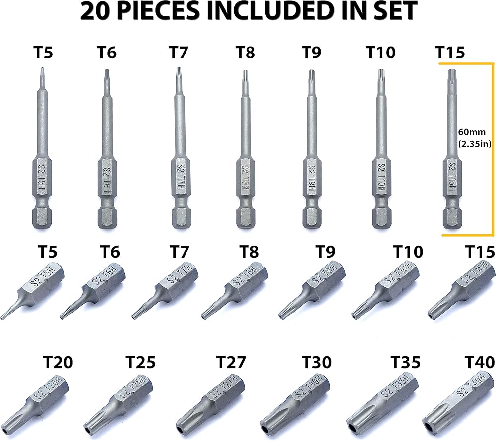 VETCO 20-Piece Security Torx Bit Set, Tamper Resistant Star Bits Set S2 Steel, 1" and 2.25" Long T5 - T15