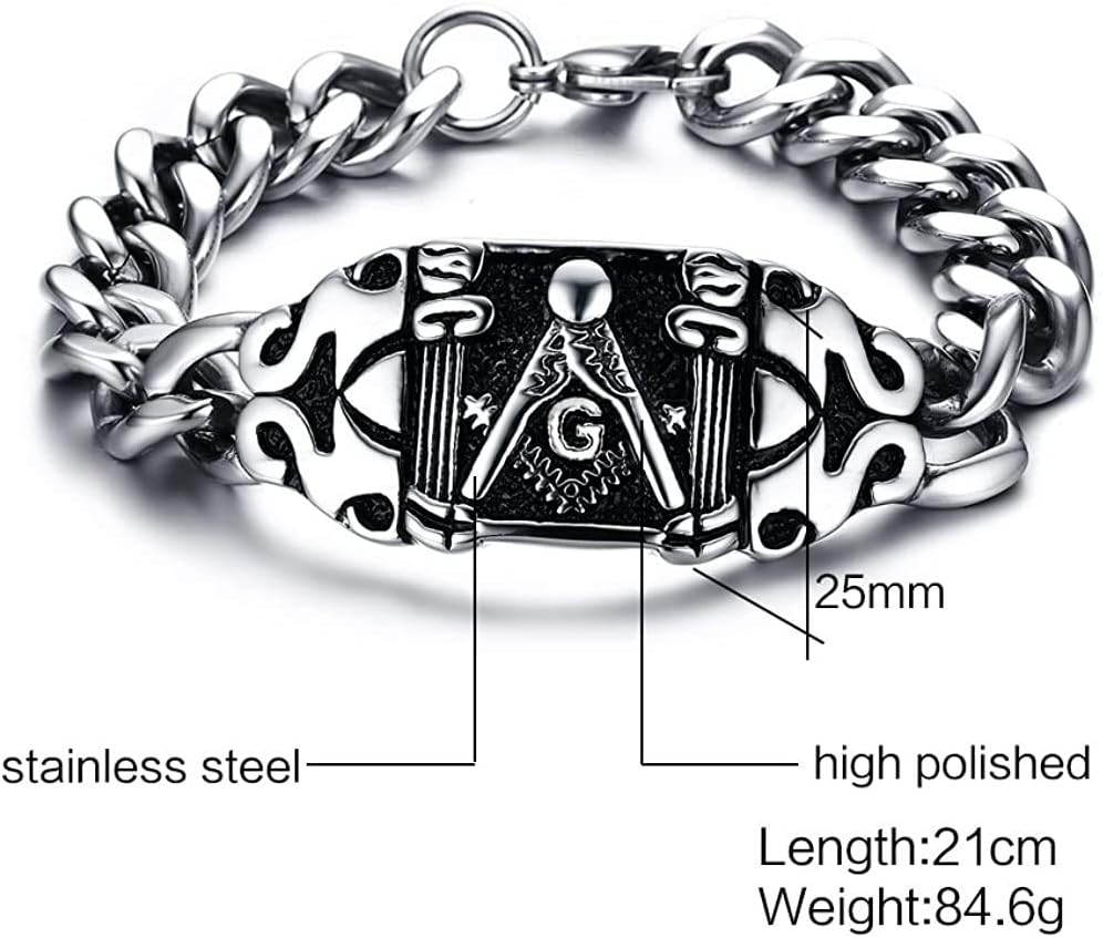 (Excellent Masonic Design) This men's bracelet has a simple and easy to wear design that is not too flashy, not too plain, and has just the right amount of presence. A popular stainless steel bracelet that can be used for everyday use or formal occasions