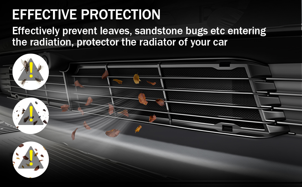🔹Protect Radiator & Cooling System: Front grille mesh effectively blocks rocks, leaves, bugs, and road debris, helping protect the radiator, condenser, and cooling components from costly damage.