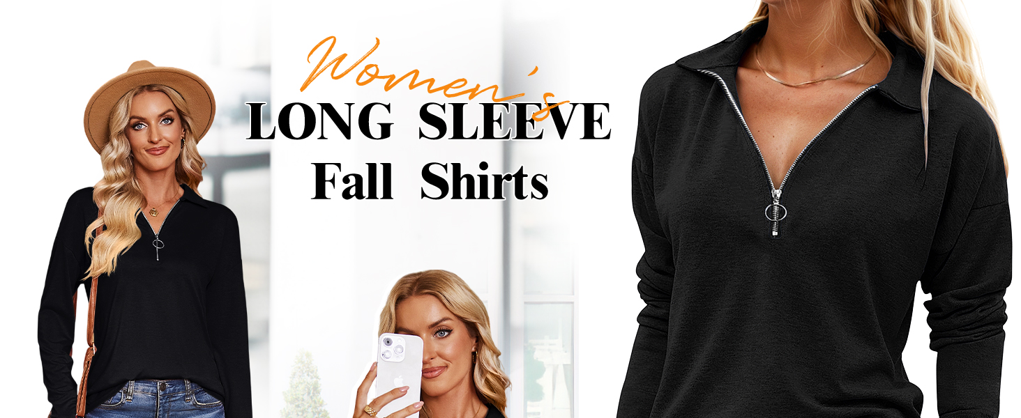 Half Zip Design: Womens fall shirts, long sleeve tops for women have the detail of the zipper adds a fashionable touch, give the plain tank tops a delicate and chic style. A classy v neck subtly reveals the delicate collarbone, with high-quality adjustable zip, you can achieve the perfect fit whether you're going for a fashionable office look or a deep v neck sexy going out look or just basic casual look. Easy to create your own fashion style with these dressy tops for women in this fall winter