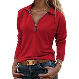 Halife Womens V Neck Collared Shirt Long Sleeve Zipper Blouse Business Casual Work Tops Blouses Shirts Fall Fashion Clothes
