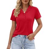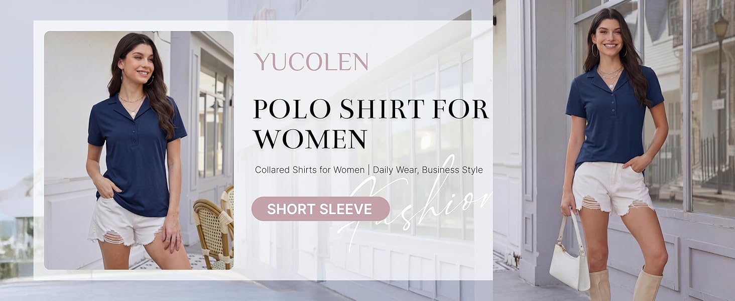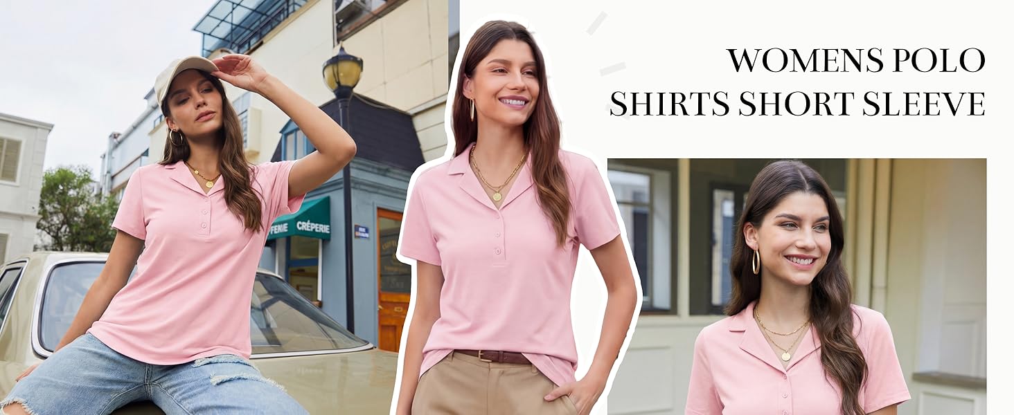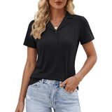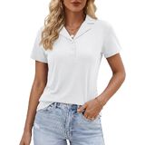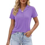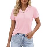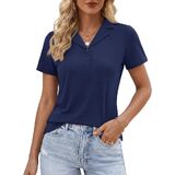 Feature: Short sleeve shirts for women, lapel collar polo shirts, button-front design. This women's short sleeve polo shirt with a classic lapel collar features a 3-button placket, giving you enough space to move and keeping you cool.